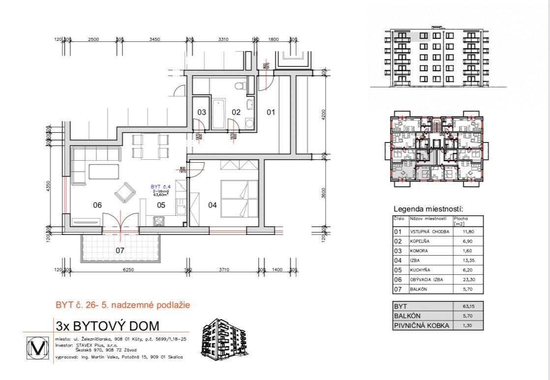 Ponúkame Vám nový, priestranný 2-izbový byt + o rozlohe 63,15m2 v novostavbe bytového domu Kúty na Železničiarskej ulici v obci Kúty.